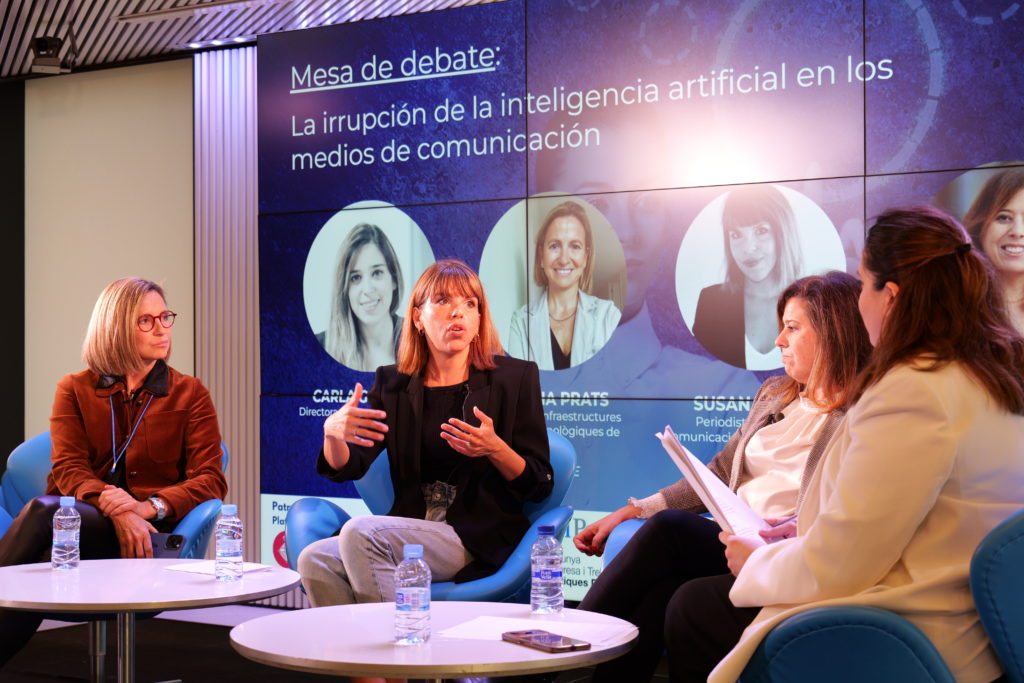 La tercera taula rodona de debat, anomenada «La irrupció de la intel·ligència artificial en els mitjans de comunicació» va estar formada per Carla Gonzalez Directora de Producció Revolució 4.0 a Catalunya Ràdio i moderadora de la taula, Natalia Prats Buendia Directora d’Infraestructures Digitals i Tecnològiques de 3Cat, Susana Pérez Soler Periodista, doctora en comunicació digital i professora universitària i Barbara Yuste Directora de Comunicacions i Relacions amb Stakeholders al GroupM Spain.