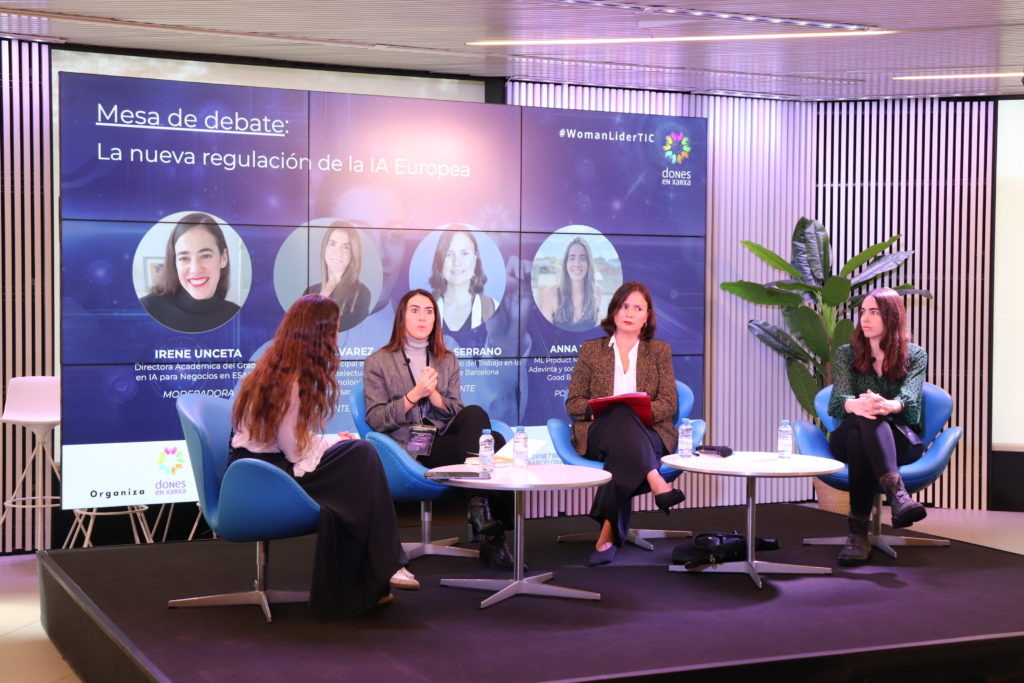La segunda mesa de debate del #WomanLiderTic 2024 se centró en uno de los temas más candentes en el ámbito tecnológico y legislativo: la nueva regulación de la Inteligencia Artificial (IA) en Europa. La mesa fue moderada por Irene Unceta, directora académica de Bachelor in Artificial Intelligence of Business en ESADE Business School, quien introdujo el tema destacando el paso histórico que supone la recién entrada en vigor normativa europea.